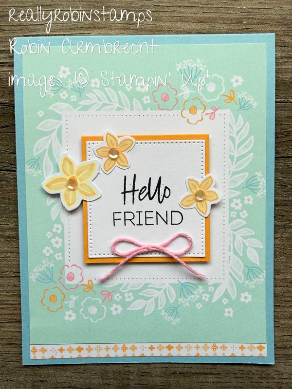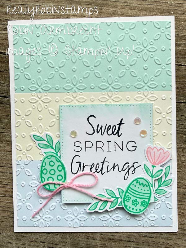 Grab your kit and join me for some creative playtime. February’s “Celebrate Spring” Kit makes nine cards. I will make three cards as designed by Stampin’ Up! and then make three alternative versions using the supplies. The photos of the alternative cards are below. Watch the video for the specific measurements used to create the alternative designs on cards #1-#3.