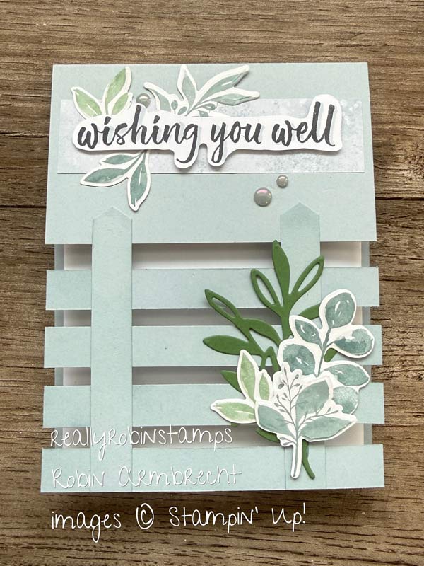- Create horizontal fence posts by spacing four 1/2” strips in the empty space of the card front. Start with a strip along the bottom edge and work your way up leaving 1/4” in between strips.